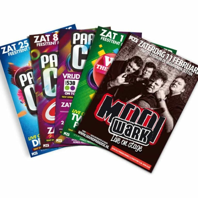Je hebt keuze uit 2 materialen, het standaard 150 gr./m2 posterpapier of het 115 gr./m2 BlueBack paper. Beide materialen worden 1-zijdig full color geprint. Doordat deze posters full color worden geprint kun je ze al bestellen vanaf 1 stuks, en zijn er geen beperkingen qua ontwerp. Deze posters zijn geschikt voor indoor gebruik, en het BlueBack paper is beperkt waterafstotend en daarmee kortstondig voor buitengebruik. Wil je posters die echt tegen water kunnen, kijk dan eens bij onze Watervaste Posters.